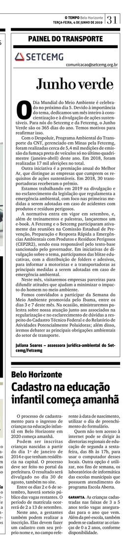 O Dia Mundial do Meio Ambiente é celebrado no próximo dia 5. Devido à importância do tema, dedicamos um mês inteiro à conscientização e divulgação de ações sustentáveis. Para nós do Setcemg e da Fetcemg o “Junho Verde” são os 365 dias do ano. Temos motivos para reafirmar isso.